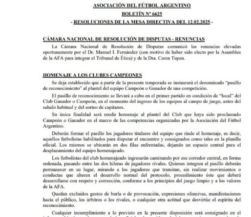 La AFA (Asociación del Fútbol Argentino) acaba de protagonizar un escándalo que trajo a la discusión un concepto técnico ajeno al público general: los metadatos. A fines de noviembre, la AFA publicó en su web oficial el Boletín N° 6625, fechado el 12 de febrero de 2025 en el cuerpo visible del mismo. El mismo establecía el protocolo del “pasillo de reconocimiento” para homenajear a equipos campeones del fútbol local. El documento apareció pocas horas después de que Estudiantes de La Plata decidiera cumplir con el pasillo a Rosario Central… de espaldas, como gesto de protesta contra la entidad.
